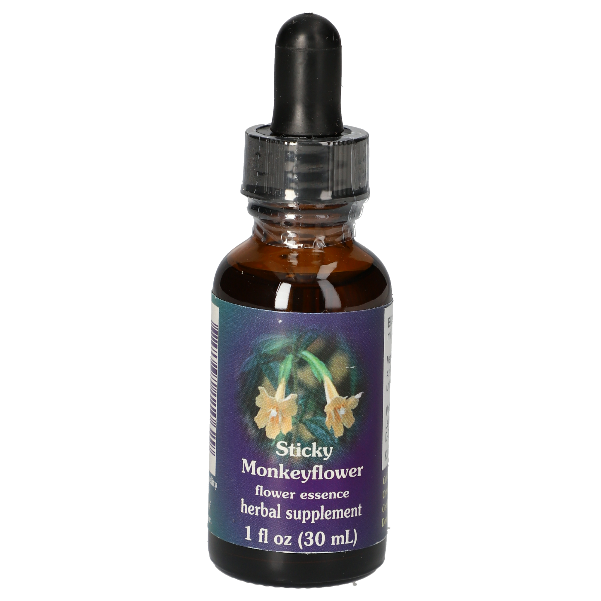 Extrait aqueux de plante Sticky Monkeyflower, eau purifiée, brandy.